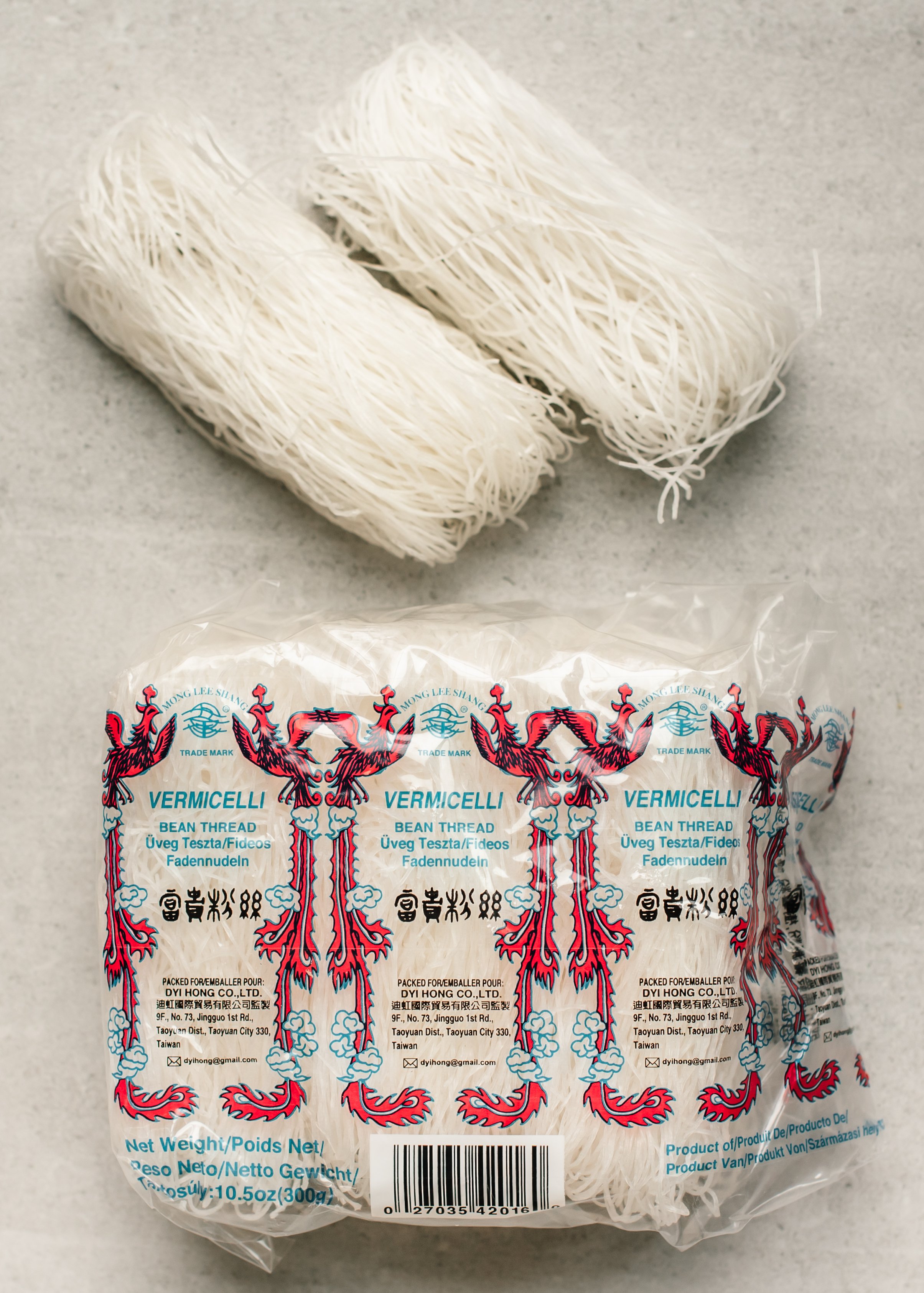 Mung bean thread vermicelli are thin, translucent noodles made from mung bean starch (sometimes in addition to other starches like tapioca). They are sold dry and should be soaked briefly ~15 mins before using. They turn clear and springy after soaking and cooking. Mung bean thread vermicelli are used in soups, hot pot, dumpling fillings, braised dishes, and more. They cook in minutes and absorb broth and sauces really well while retaining bouncy texture provided you don’t overcook them. Find them in the dry noodle aisle of Chinese grocery stores.